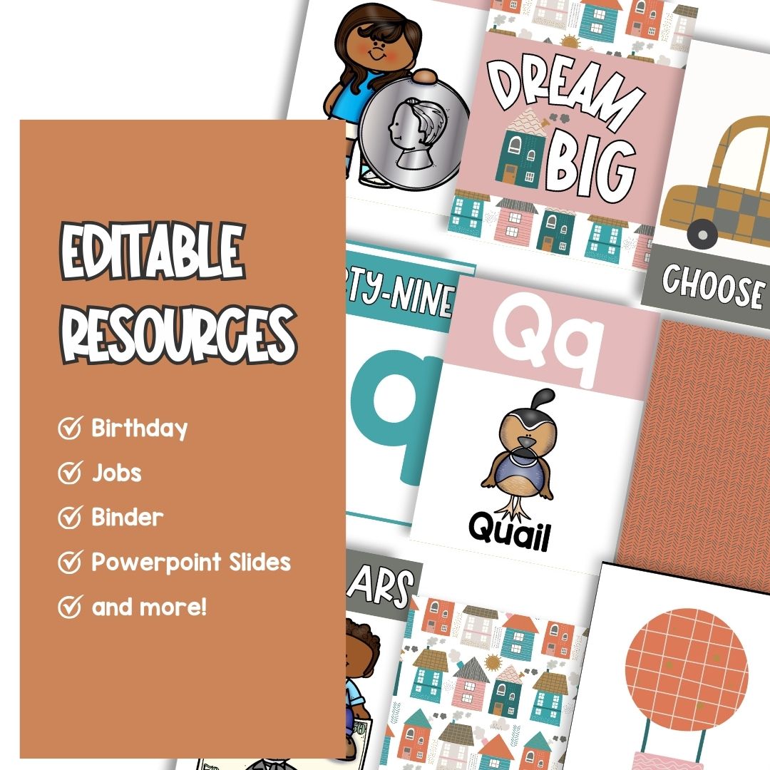 You will love this boho classroom decor bundle! It includes 32 essential items ideal for classrooms, tutoring centers, or homeschool areas. It is a fun town and car theme!