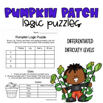 Pumpkin Patch Logic Puzzles offer a fun, fall-themed activity that encourages creativity while helping students build problem-solving and critical-thinking skills. In these interactive math puzzles, students solve autumn related math problems, practicing basic math skills and using logical reasoning to solve the challenges. Tailored to different ability levels, these puzzles are perfect for early finishers, cooperative learning, or as part of a math center.