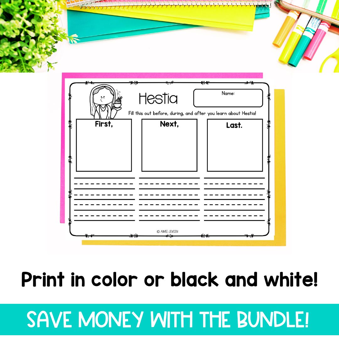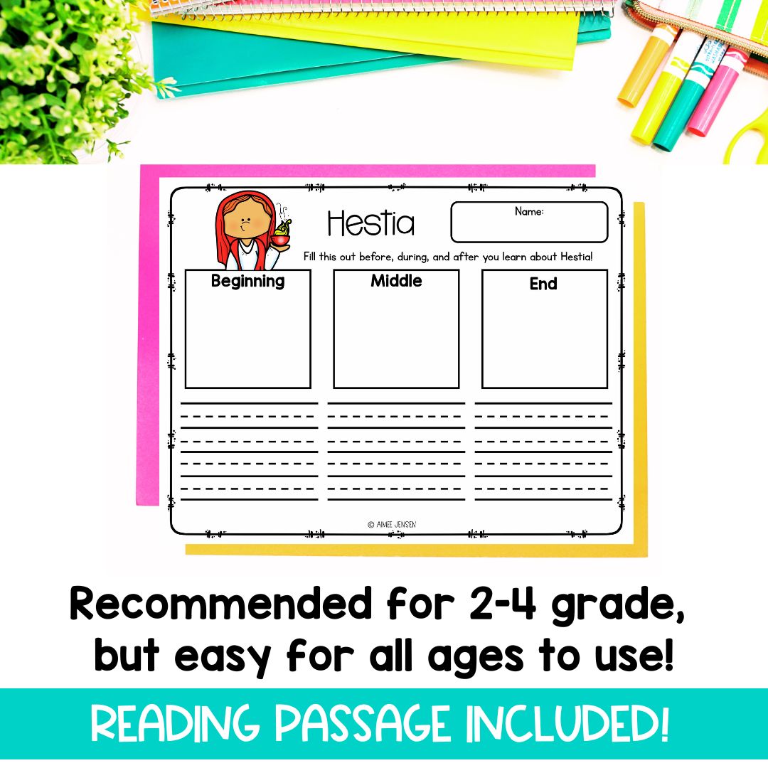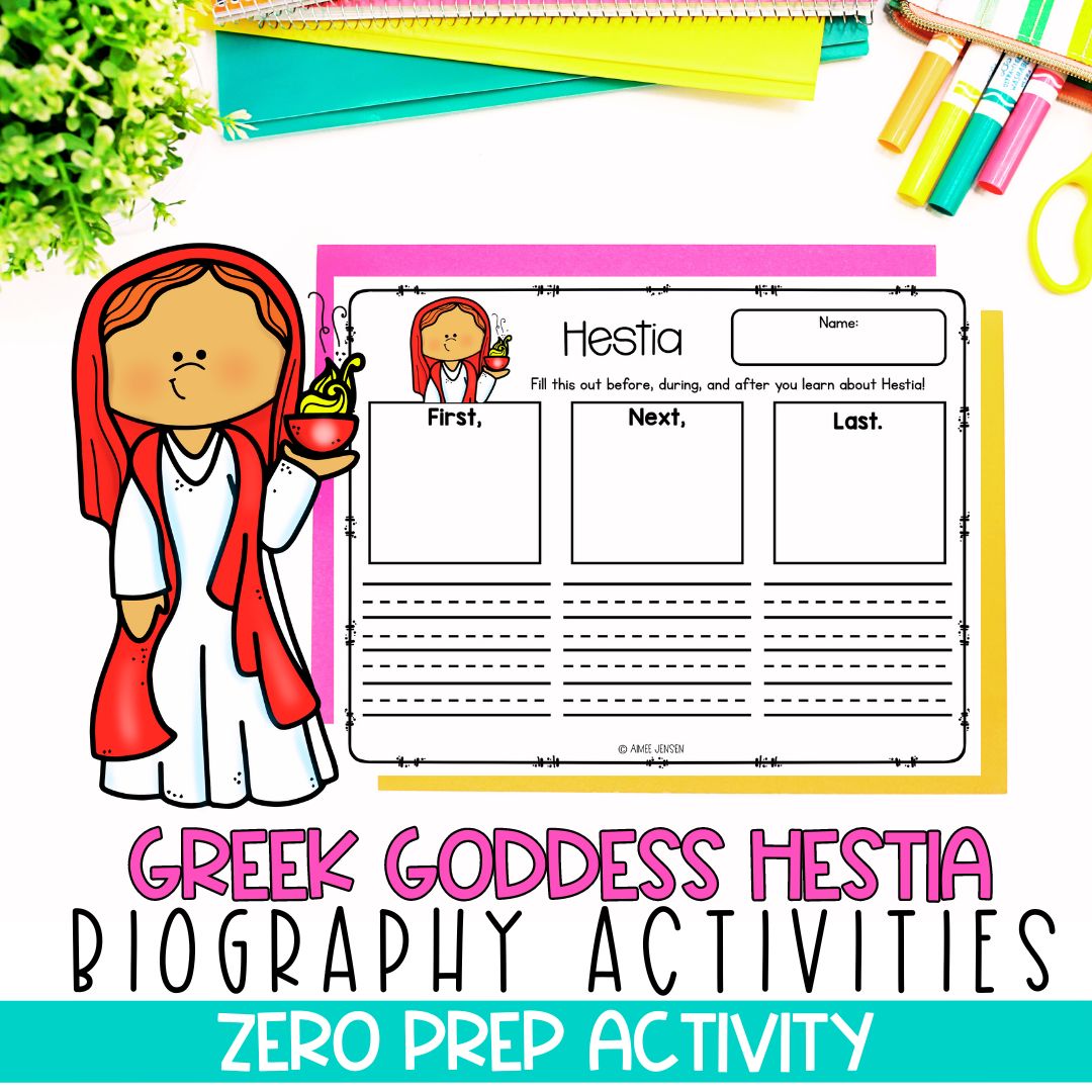 Introduce your students to the Greek Goddess Hestia with this set of 10 engaging graphic organizers, designed specifically for children in grades 2-4. These easy-to-use worksheets help young learners organize their thoughts and gain a deeper understanding of this influential historical figure. Perfect for busy teachers, these print-and-go resources require no preparation and can be used in both color and black and white. Ideal for individual, group, or whole-class activities, these organizers make learning about biographies fun and educational, fostering critical thinking and creativity in your classroom.